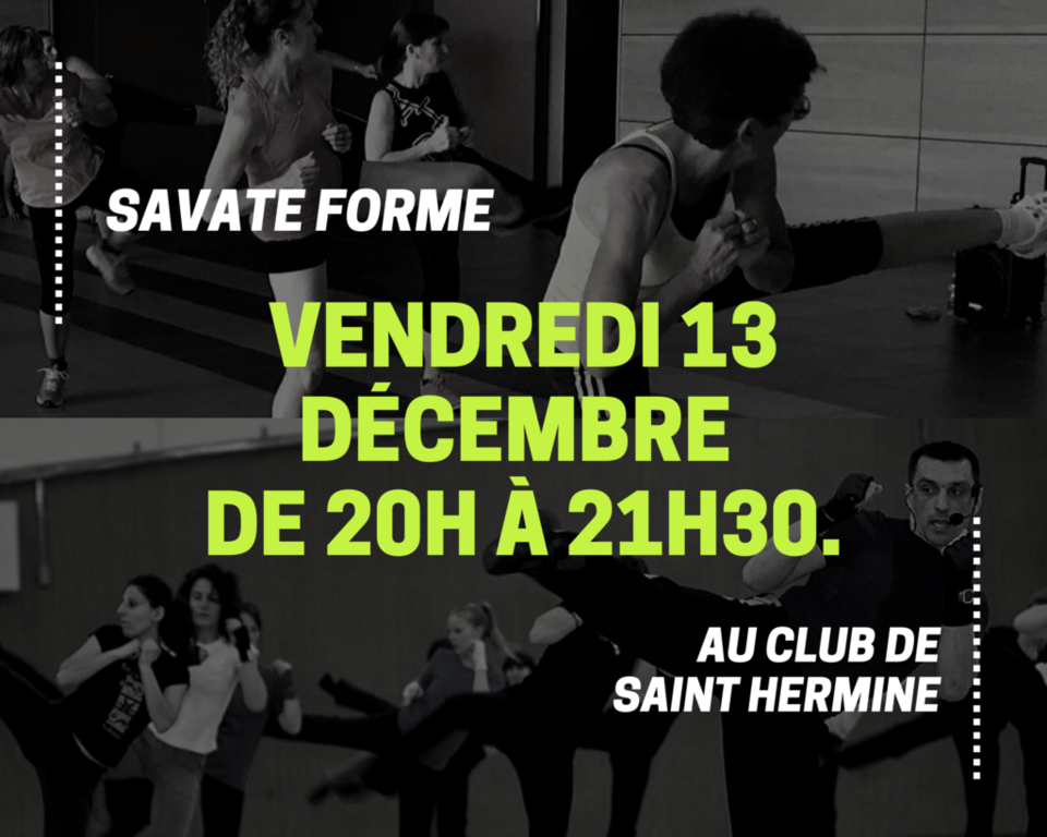 Une session de savate forme est organisée le vendredi 13 décembre de 20h à 21h30 au club de Saint Hermine.