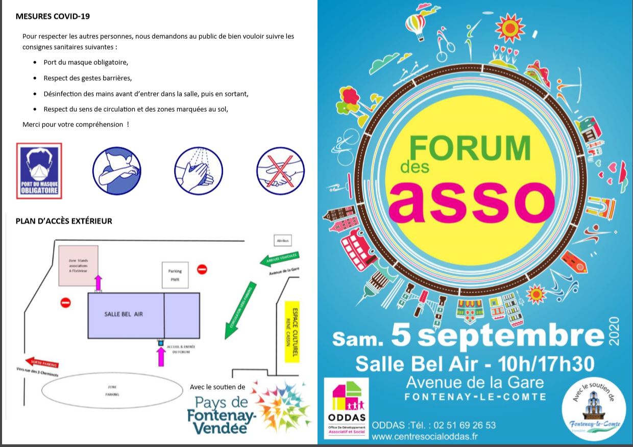 Forum des associations le samedi 5 septembre 2020 de 10h à 17h30 salle bel air a Fontenay le comte